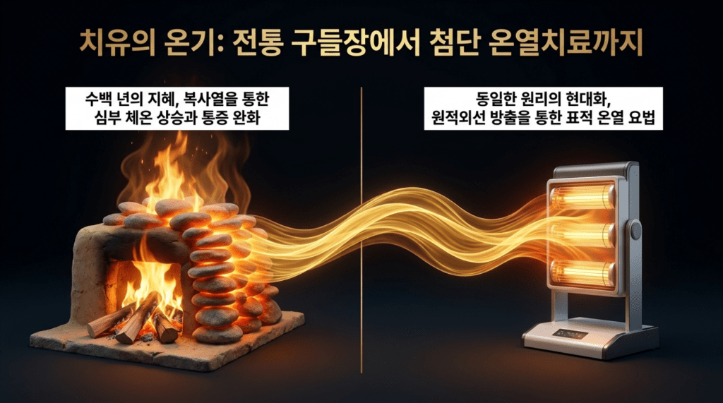 우리나라의 아궁이도 원적외선이 방사 되기 때문에 이전에 아낙네들은 자궁쪽병이 덜했다.