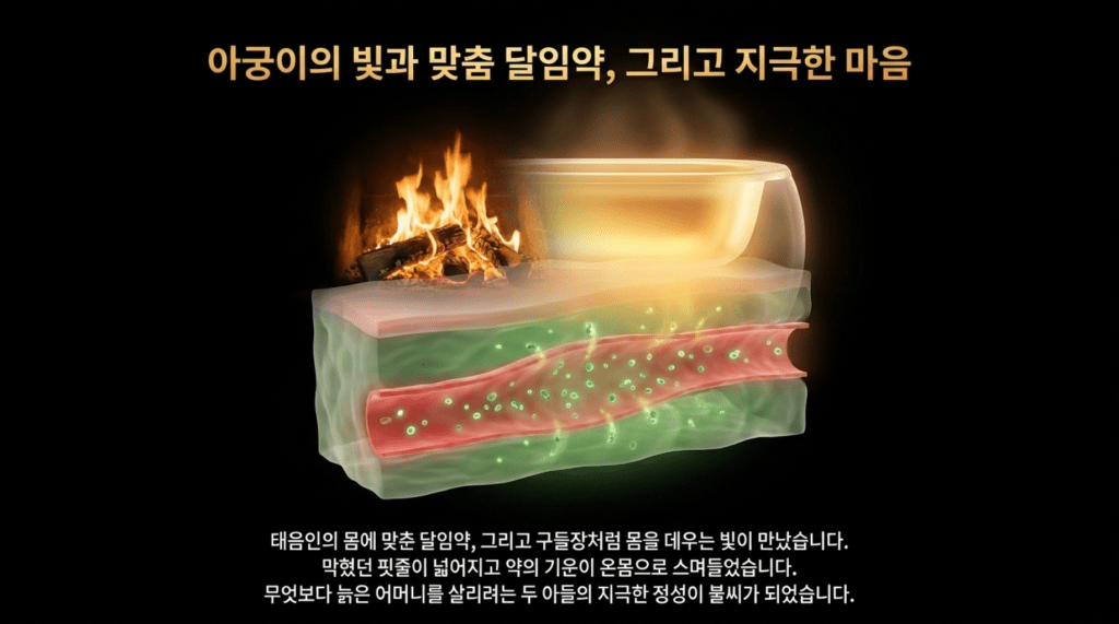 그래서 온열찜질을 하는 TDP 기계를 하나 집에서 사 놓고 아침 저녁하시면서 치료를 하시면서 한약을 들게 하였다. 양약은 어차피 태음인에 맞는 넥사바를 쓸 수가 없었기에 한약 단독으로 치료를 시작하였다. 그런데 이분은 놀랍게도 복수가 빠져서 무사히 3년 넘게 견디셨다.