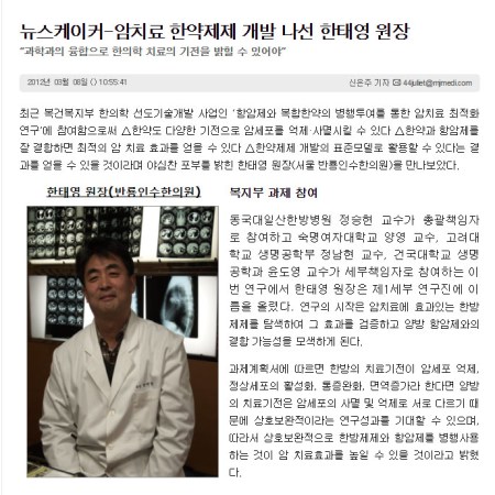 뉴스케이커-암치료 한약제제 개발 나선 한태영 원장